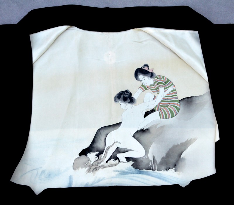 C1920 JAPANESE SILK ROBE HIDDEN EROTIC SCENE