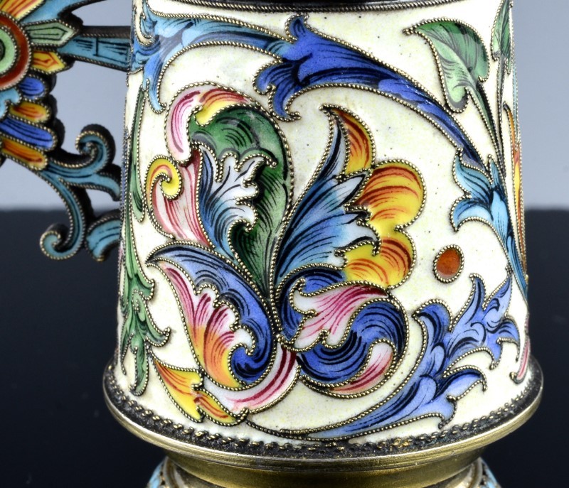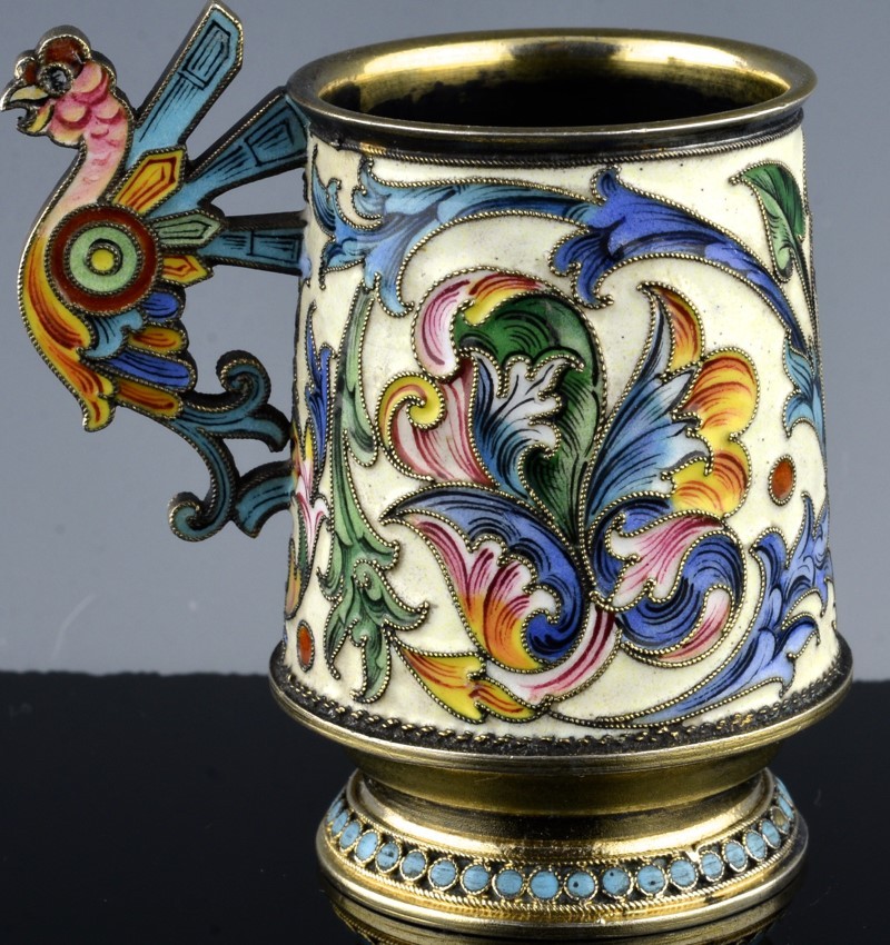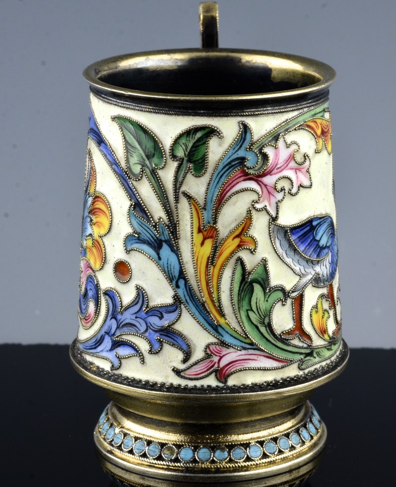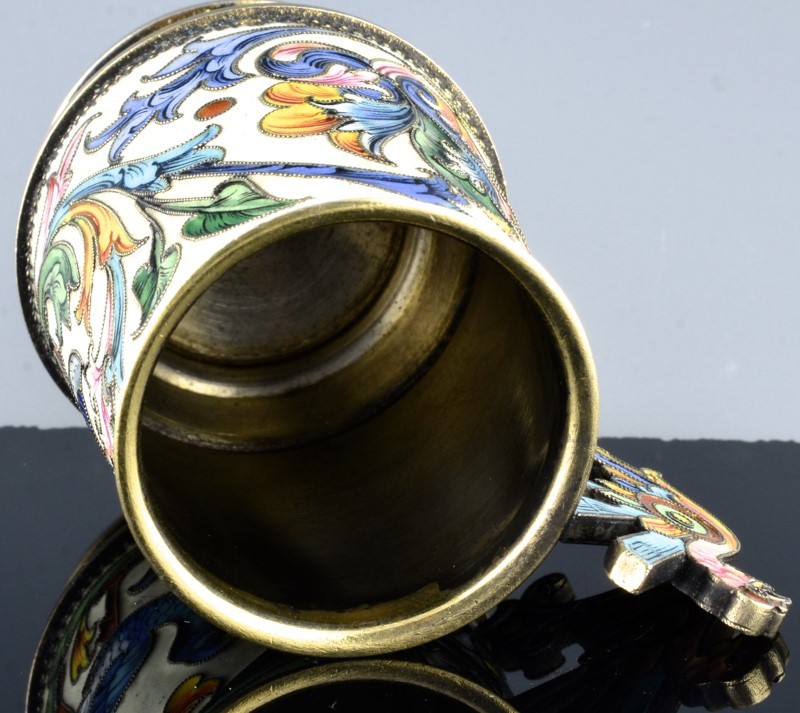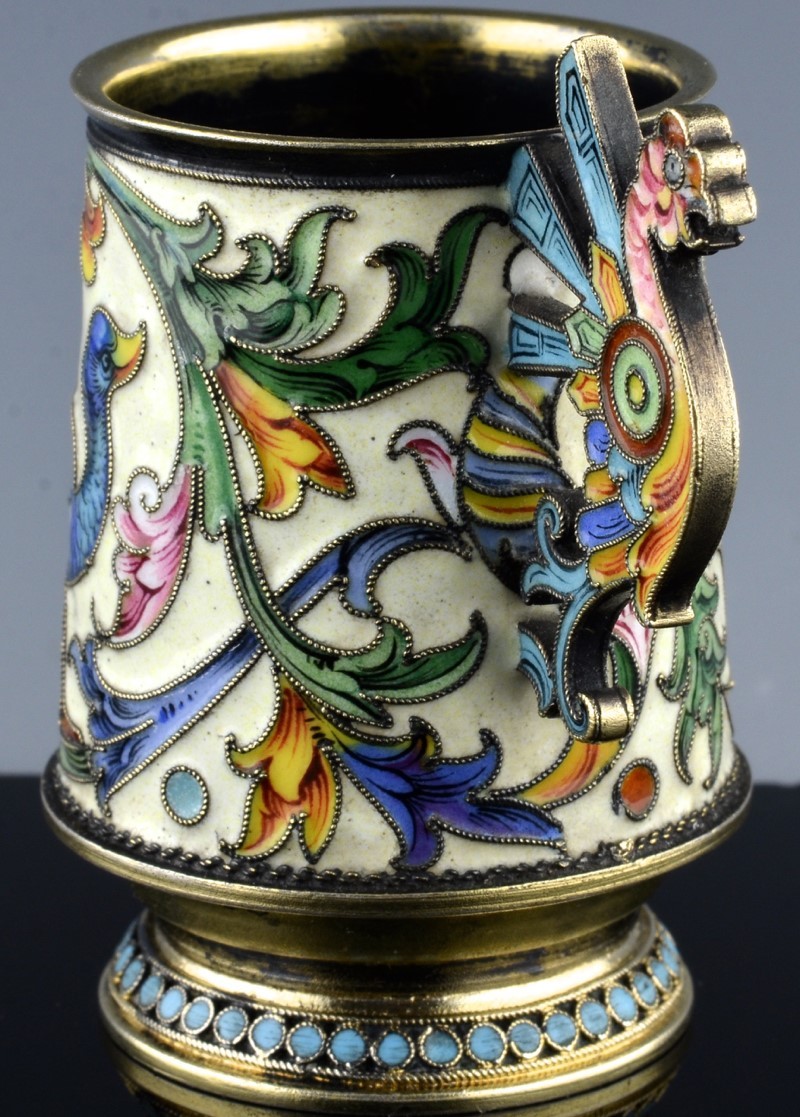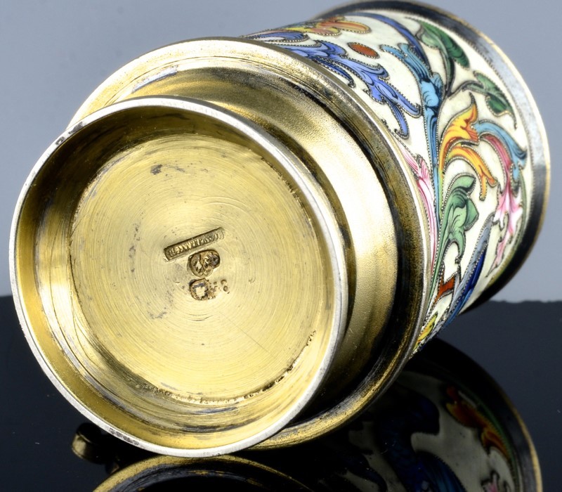c1900 RUSSIAN ENAMEL SILVER CHARKA VODKA CUP FEODOR RUCKER