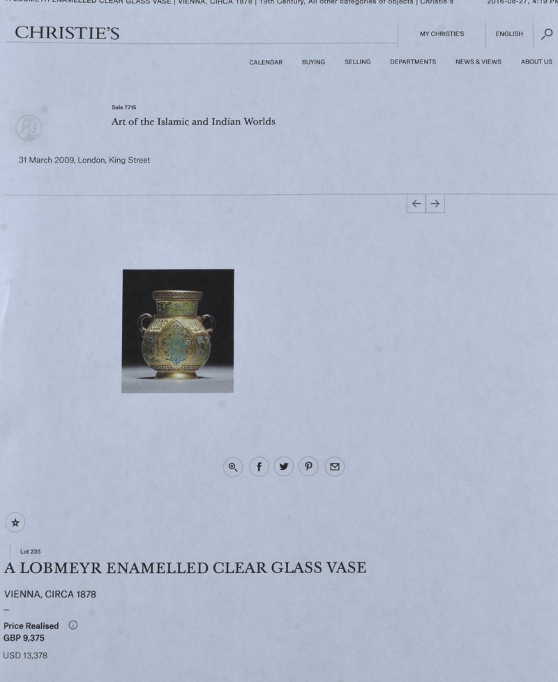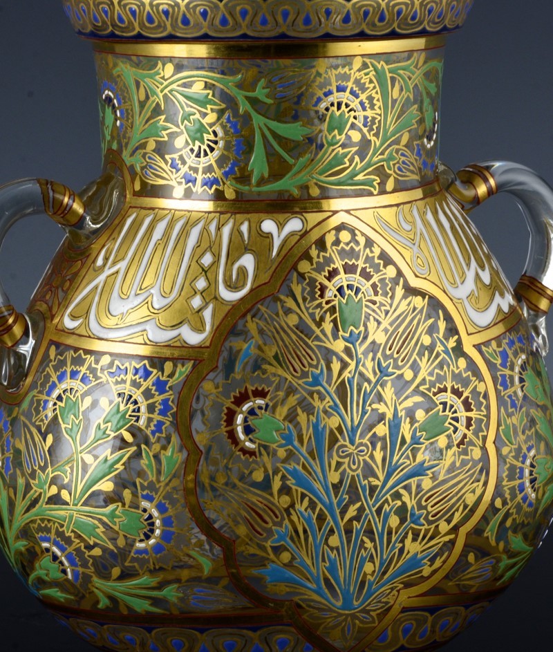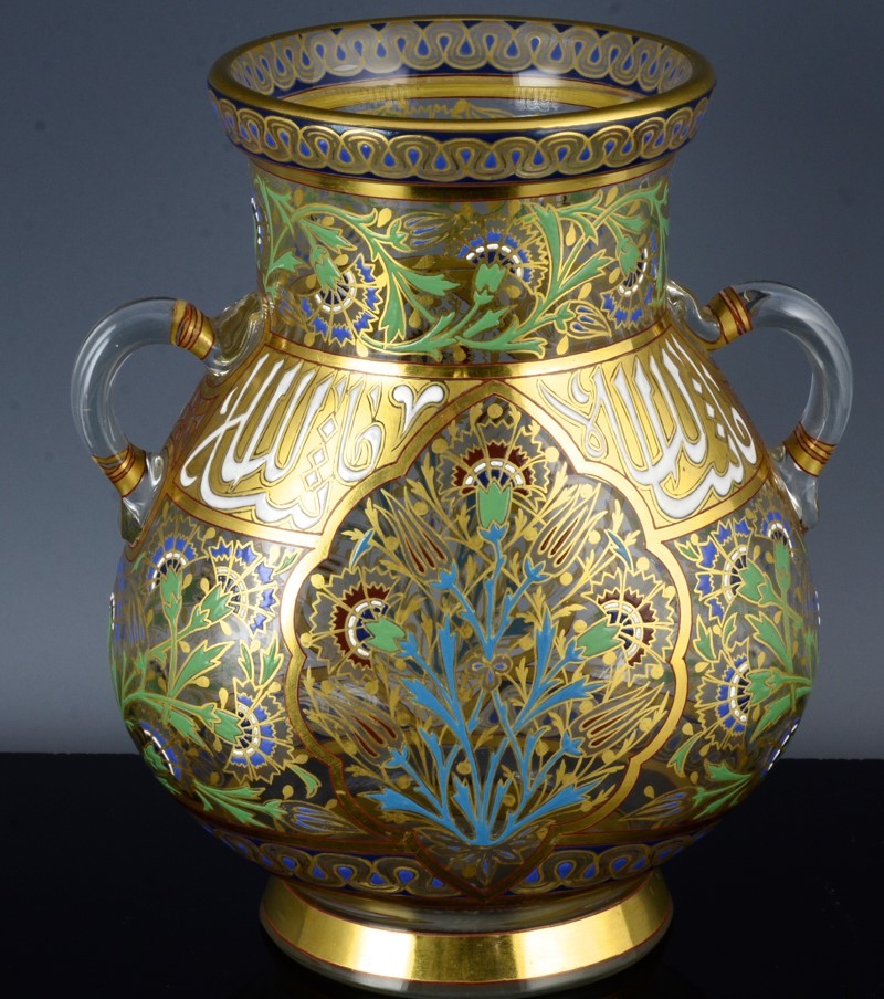 c1878 LOBMEYR AUSTRIAN ENAMELED ISLAMIC OTTOMAN DESIGN VASE